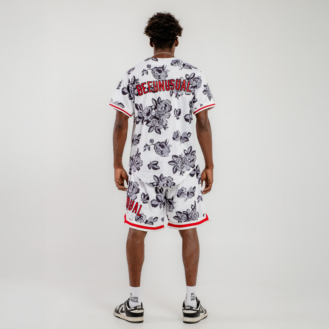 Breathable, Double layer 100% Poly Mesh fully lined, fully sublimated print with embroidered Bee Unusual logo.Comfortable waistband with flat drawcord, side pockets.